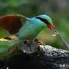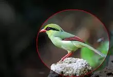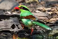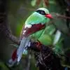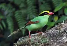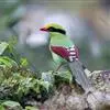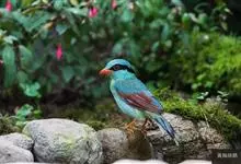 蓝绿鹊:中型鸟类,共有5个亚种。体长36-38厘米。尾长,嘴、脚红色。通体羽色主要为草绿色,宽阔的黑色贯眼纹向后延伸到后颈,在绿色的头侧极为醒目。两翅栗红色,内侧飞羽具黑色次端斑和白色尖端。尾绿色,…全部>>