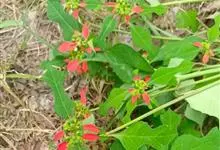 猩猩草:常绿或半常绿灌木,盆栽时株高0.5米-2米,在亚热带地区可长到6米以上。茎直立而光滑,单叶互生,卵状椭圆形至阔披针形,具不规则的深缺刻。长10-15厘米。花小,有蜜腺,排列成密集的伞房花序。…全部>>