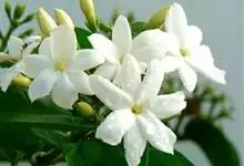 素馨花,木犀科素馨属多年生的攀援灌木植物。攀援灌木,小枝圆柱形,具棱或沟;叶对生,叶轴常具窄翼,小叶片卵形或长卵形;聚伞花序顶生或腋生,花序梗长,苞片线形,花萼无毛,裂片锥状线形,花冠白色,…全部>>