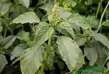 反枝苋是苋科苋属的一年生草本植物。株高达1米;茎密被柔毛;叶菱状卵形或椭圆状卵形,先端锐尖或尖凹,两面及边缘被柔毛,下面毛较密;穗状圆锥花序,顶生花穗较侧生者长;花被片长圆形或长圆状倒卵形,…全部>>