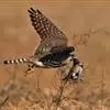 灰背隼是隼科隼属鸟类。全长25-33厘米,雄鸟头顶深灰色,头部棕褐色,具不明显的细白色眉纹,颊、喉白色,上背及两翼深灰色,飞羽黑色,尾灰色而具宽阔的黑色次端斑和不明显的白色端斑,…全部>>