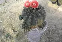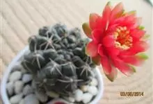 绯花玉 Speg.)是仙人掌科、裸萼球属多肉植物,植株呈扁球形,表皮墨绿色,刺针状,每个刺座有5枚灰色周刺,花生于球体顶端,夏季开花,花色有白、粉红、深红等。果实纺锤形,深灰绿色,种子黑色。…全部>>