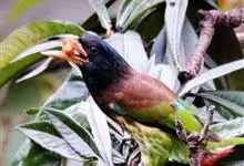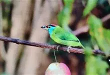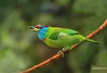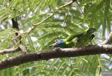 黑眉拟啄木鸟,为须䴕科、拟啄木鸟属的小型鸟类,体长20-25厘米,外形和金喉拟啄木鸟非常相似,但具粗著的黑色眉纹,头侧和耳覆羽以及下喉蓝色而不为银灰色,前颈两侧各有一块鲜红色斑。全部>>