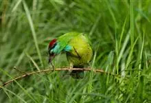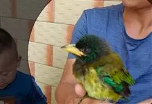 绿拟啄木鸟为鴷形目,须科,拟啄木属的一种。形较大拟啄木鸟略小,体长约260mm。头、颈及胸浅褐而具淡黄白色条纹;喉几为淡黄白色;身体余部草绿色。虹膜棕褐色,眼周裸露部黄色;嘴峰角黄色;跗跖和趾角黄…全部>>