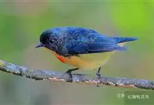 黄腹啄花鸟:体重11-16克,体长104-117毫米。是一种体型大,下腹部为艳黄色的啄花鸟,雄鸟特征为头黑色,喉部有白色纵斑、喉侧及上体成对比,两翅和尾黑色,外侧尾羽内翈具白色斑块。其余下体淡黄色。…全部>>