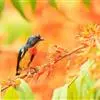 朱背啄花鸟:体重6-8克,体长81-97毫米。是一种小型的黑色及红色啄花鸟。雄鸟顶冠、背及腰猩红色,两翼、头侧及尾黑,两胁灰,下体余部白色。雌鸟上体橄榄色,腰及尾上覆羽猩红,尾黑。亚成鸟清灰色,嘴橘黄,…全部>>