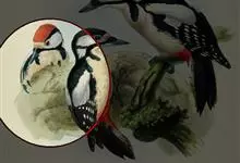 大斑啄木鸟隶属鸟纲鴷形目啄木鸟科。雄鸟头顶黑色,枕部红色,眼先、颊部和耳羽白色,颈部污白色,下嘴基部至后颈有1道黑色条纹并与从颈侧延伸到胸侧的黑色条带相连,背和两翼黑色,肩部具1个大的白色斑块,…全部>>