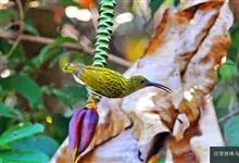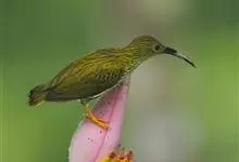 纹背捕蛛鸟:为太阳鸟科捕蛛鸟属的鸟类。是太阳鸟科中体型较大的一种,体重25-45克,体长160-210毫米。嘴粗长而尖且向下弯曲。上体橄榄黄色具黑色中央斑纹。下体淡黄白色满布黑色纵纹,尾具黑色次端斑。…全部>>