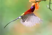 雀形目、太阳鸟科、太阳鸟属鸟类的通称。体型纤细,嘴细长而下弯,嘴缘先端具细小的锯齿;雄鸟中央尾羽特别长;两性异色。世界共有14种,分布于亚洲南部、菲律宾群岛和印度尼西亚。中国有6种。…全部>>