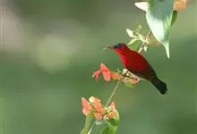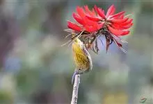 黄腰太阳鸟共有16个亚种,小型鸟类,体长10-15厘米。嘴细长而向下弯曲,雄鸟额和头顶前部金属绿色,头顶后部橄榄褐色。其余头、颈、背、肩、颏、喉、胸以及翅上中覆羽和小覆羽概为红色,腰黄色,…全部>>