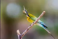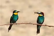 蓝颊蜂虎:是蜂虎科、蜂虎属的鸟类,共有2个亚种。体长27-33厘米,翼展46-49厘米,体重38-50克。嘴形细长而下弯,先端尖,…全部>>