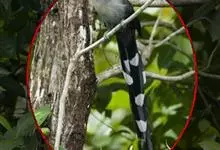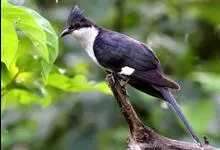 斑翅凤头鹃: 成鸟具羽冠,上体及头侧、翅、尾等黑色,具铁绿色亮辉,尾羽端部具白斑,两侧者形宽,中央者较狭;下体白色、淡灰白或略带棕黄色。虹膜褐至红褐色;嘴黑色;脚灰蓝黑色。…全部>>