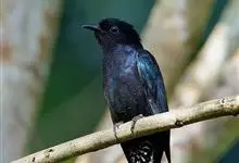 乌鹃:是杜鹃科、乌鹃属的小型鸟类,体长23-28厘米,通体黑色,尾呈浅叉状,尾下覆羽和外侧尾羽具白色横斑,在黑色的尾部极为醒目。下体黑色,微带蓝色或辉绿色。虹膜褐色或绯红色,嘴黑色,脚灰蓝色。…全部>>