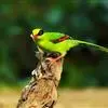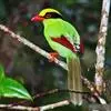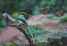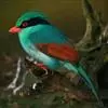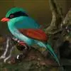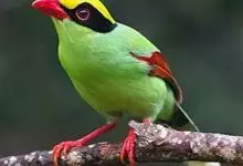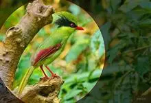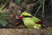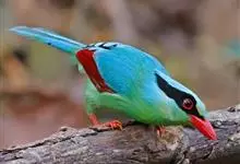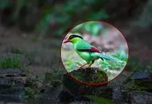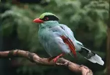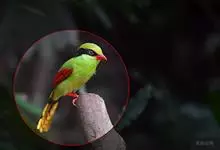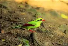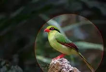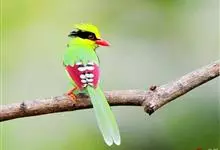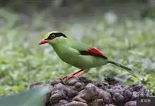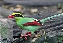 蓝绿鹊:中型鸟类,共有5个亚种。体长36-38厘米。尾长,嘴、脚红色。通体羽色主要为草绿色,宽阔的黑色贯眼纹向后延伸到后颈,在绿色的头侧极为醒目。两翅栗红色,内侧飞羽具黑色次端斑和白色尖端。尾绿色,…全部>>