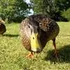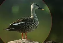 绿头鸭属游禽,大型鸭类。体长47-62厘米,体重大约1千克,外形大小和家鸭相似。雄鸟嘴黄绿色,脚橙黄色,头和颈辉绿色,颈部有一明显的白色领环。上体黑褐色,腰和尾上覆羽黑色,两对中央尾羽亦为黑色,且向…全部>>