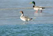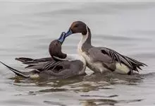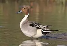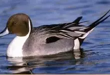 针尾鸭,是雁形目鸭科鸭属动物。体长约75厘米的大型戏水鸭,雄鸟头暗褐色,颈侧有白色纹路,向下与胸部白色相连,中央一对尾羽特别长;背灰色,有黑色细纹;翼镜绿色,胸腹白色,尾下覆羽黑色;雌鸟体羽大致为褐色,…全部>>
