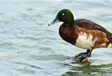 红头潜鸭为鸟纲雁形目鸭科潜鸭属动物,又名红头鸭,矶凫,体长约46厘米;雄鸟头部栗红色,胸部黑色,背部及腹部灰白色,尾黑色,嘴蓝灰色且端部黑色;雌鸟头部及胸部暗褐色,背部及腹部灰色,尾部褐色,嘴基部色浅。…全部>>