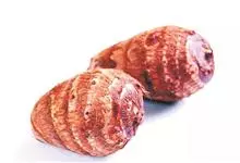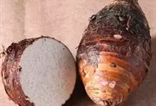 芋头又称芋、芋艿,天南星科植物的地下球茎,形状、肉质因品种而异,通常食用的为小芋头。多年生块茎植物,常作一年生作物栽培。叶片盾形,叶柄长而肥大,绿色或紫红色;植株基部形成短缩茎,逐渐累积养分肥大成肉…全部>>