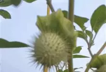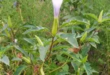 曼陀罗,茄科曼陀罗属一年生大型草本植物,全株光滑。有臭气;叶呈广卯形,边缘具不规则波状浅齿裂;花单生于枝杖间或叶腋,直立,有短梗;花萼是筒状裂片三角形,颜色为白色或淡紫色;果实为蒴果卵状,…全部>>