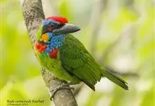 金喉拟啄木鸟,是须鴷科、拟啄木鸟属的鸟类。金喉拟啄木鸟为小型鸟类,体长19-24厘米。额深红色,头顶金黄色,后枕具一大块深红色斑,耳羽和头侧银灰色,上体草绿色,颏和上喉金黄色,下喉淡银灰色,…全部>>
