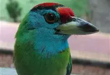 蓝喉拟啄木鸟,是须鴷科、拟啄木鸟属的鸟类。蓝喉拟啄木鸟为小型鸟类,体长20-23厘米。前额至头顶鲜红色,其上有一宽阔的黑色横带,将此红色分为前后二块;头侧、颏、喉蓝色,下喉两侧各具一红色点斑。…全部>>