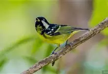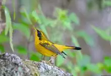 金色林鸲是鹟科、鸲属小型鸟类,体长12-15厘米。头顶至背黄橄榄绿色,眼先和头侧黑褐色,眉纹金橙黄色。肩、翅上小覆羽、腰、尾上覆羽和整个下体概为金橙黄色,两翅黑色。中央尾羽黑色,…全部>>
