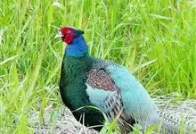 绿雉,是鸡形目雉科雉属陆禽,又名日本雉。雄鸟体长约81.5厘米,雌鸟体长约58厘米,属体型较大的雄类。雄鸟全身绿色,两颊具红色肉冠和肉垂,两翅和尾部棕色,有暗色横斑;雌鸟全身棕色,布满暗色斑点。…全部>>