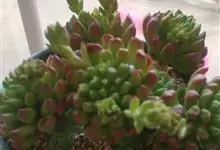 虹之玉是景天科景天属的多肉植物,多年生肉质草本植物。生长速度较快,叶片肉质,呈长椭圆形,约1厘米长,互生。花黄色,星形,秋冬季节或强光照下,叶片部分或全部转为鲜红色。生长适温10~28℃,…全部>>
