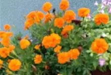 万寿菊是菊科万寿菊属一年生草本植物,别名孔雀菊、缎子花、臭菊花、西番菊、红黄草、小万寿菊、臭芙蓉、孔雀草。万寿菊茎近基部分枝。叶羽状分裂,长5-10厘米,宽4-8厘米,裂片长椭圆形或披针形,具锐齿,…全部>>