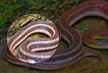 绿瘦蛇是游蛇科,瘦蛇属轻毒性后沟牙毒蛇。体型极细而长,长可达1.5米。头较窄长,与颈区分极明显;吻端略圆而平扁,超出下领;眼大,瞳孔呈一横缝;颊区呈一凹槽;躯干瘦长侧扁,尾甚长而细。背面鲜绿色,…全部>>