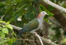 绿皇鸠体形比绿鸠类和果鸠类大,体长36-38厘米,体重508-600克。嘴也较大,嘴基扩张,身体上的杂色通常较少。头部、颈部和下体为鸽灰色,微缀粉葡萄红色,尾下覆羽为暗栗色。前额和额为白色,…全部>>
