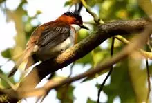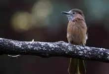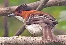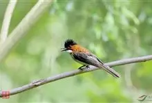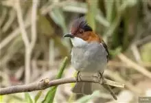 栗背短脚鹎,体长18-22厘米。上体栗褐,头顶和羽冠黑色。背栗色、翅和尾暗褐色具白色或灰白色羽缘。颏、喉白色,胸和两胁灰白色,腹中央和尾下覆羽白色。…全部>>