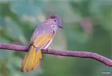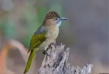 灰短脚鹎,体长19-22厘米。头顶和短的羽冠黑色,上体暗灰色,耳羽灰褐色,两翅表面橄榄绿黄色。大覆羽和内侧飞羽外翈橄榄黄色,在翅上形成大块绿黄色斑,在灰色的上体极为醒目。尾暗褐色具橄榄绿色羽缘。…全部>>