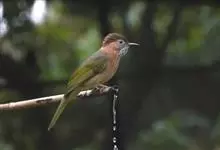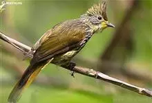 绿翅短脚鹎是鹎科、短脚鹎属的鸟类。共有9个亚种。中型鸟类,体长20-26厘米。头顶羽毛形尖、栗褐色具白色羽轴纹,在暗色的头部极为醒目。上体灰褐缀橄榄绿色,两翅和尾亮橄榄绿色。耳和颈侧红棕色,颏、喉灰色,…全部>>