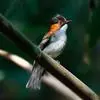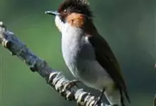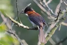 栗背短脚鹎,体长18-22厘米。上体栗褐,头顶和羽冠黑色。背栗色、翅和尾暗褐色具白色或灰白色羽缘。颏、喉白色,胸和两胁灰白色,腹中央和尾下覆羽白色。…全部>>