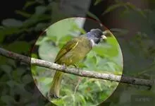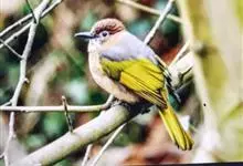 灰短脚鹎,体长19-22厘米。头顶和短的羽冠黑色,上体暗灰色,耳羽灰褐色,两翅表面橄榄绿黄色。大覆羽和内侧飞羽外翈橄榄黄色,在翅上形成大块绿黄色斑,在灰色的上体极为醒目。尾暗褐色具橄榄绿色羽缘。…全部>>