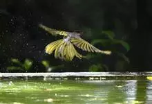 绿翅短脚鹎是鹎科、短脚鹎属的鸟类。共有9个亚种。中型鸟类,体长20-26厘米。头顶羽毛形尖、栗褐色具白色羽轴纹,在暗色的头部极为醒目。上体灰褐缀橄榄绿色,两翅和尾亮橄榄绿色。耳和颈侧红棕色,颏、喉灰色,…全部>>