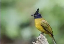 黑冠黄鹎:体长18-21厘米,是一种中等体型偏黄色鹎。整个头、颈、颏、喉黑色,头顶有显著直立的羽冠,黑色,上体褐橄榄黄绿色,下体橄榄黄色。虹膜偏红;嘴及脚黑色。…全部>>
