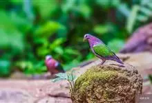 绿背金鸠体长约25厘米,是中等体型、尾甚短的地栖型斑鸠。下体粉红,头顶灰色,额白,腰灰,两翼具亮绿色。雌鸟头顶无灰色。飞行时背部两道黑色和白色的横纹清晰可见。主要栖息于2000米以下的山地森林中,…全部>>