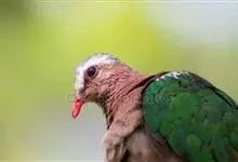 绿皇鸠体形比绿鸠类和果鸠类大,体长36-38厘米,体重508-600克。嘴也较大,嘴基扩张,身体上的杂色通常较少。头部、颈部和下体为鸽灰色,微缀粉葡萄红色,尾下覆羽为暗栗色。前额和额为白色,…全部>>