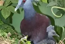 蓝凤冠鸠是鸽形目鸠鸽科凤冠鸠属鸟类,又称绿背金鸠。通体蓝色,羽毛光滑而整洁;在尾部和翅下分别有一块白色区域;翅膀中部部分至前胸略呈紫色;眼睛红色,周围的羽毛颜色较深;腿部长有小斑点。每只脚长有4趾,…全部>>