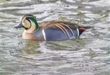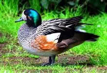 绿翅鸭是小型鸭类,体长37厘米,体重约0.5千克。嘴脚均为黑色。雄鸟头至颈部深栗色,头顶两侧从眼开始有一条宽阔的绿色带斑一直延伸至颈侧,尾下覆羽黑色,两侧各有一黄色三角形斑,在水中游泳时,极为醒目。…全部>>
