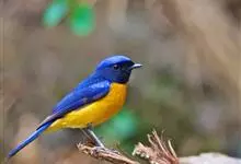 棕腹大仙鹟:体重24-28克,体长15-17厘米,是一种小型的色彩亮丽的鹟。雄鸟上体深蓝,下体棕色,脸黑,额、颈侧小块斑、翼角及腰部亮丽闪辉蓝色。与棕腹仙鹟易混淆,区别在色彩较暗。雌鸟灰褐,…全部>>