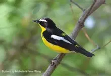 白眉姬鹟是小型鸟类,体长11-14厘米。雄鸟上体大部黑色,眉纹白色,在黑色的头上极为醒目。腰鲜黄色,两翅和尾黑色,翅上具白斑。下体鲜黄色。雌鸟上体大部橄榄绿色。腰鲜黄色,翅上亦具白斑。下体淡黄绿色。…全部>>