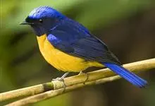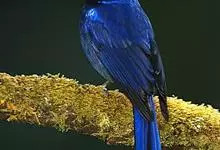 大仙鹟:体重34-38克,体长20-2厘米。是一种体型较大的深色鹟。雄鸟上体蓝色,头顶、颈侧条纹、肩块及腰部辉蓝,下体黑色。雌鸟橄榄褐色,头顶蓝灰,颈侧具闪辉浅蓝色块,喉具皮黄色三角形块斑。…全部>>
