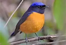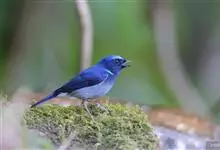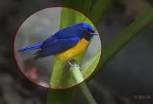 棕腹大仙鹟:体重24-28克,体长15-17厘米,是一种小型的色彩亮丽的鹟。雄鸟上体深蓝,下体棕色,脸黑,额、颈侧小块斑、翼角及腰部亮丽闪辉蓝色。与棕腹仙鹟易混淆,区别在色彩较暗。雌鸟灰褐,…全部>>