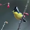 台湾黄山雀体长约13厘米。头顶至后颈黑色,有一长的黑色羽冠,羽冠末端和后颈中央白色。背苍绿色,两翅和尾黑色,羽缘蓝灰色,外侧尾羽白色。额基和下体鲜黄色,尾下覆羽白色,雄鸟腹部有一黑斑。…全部>>