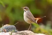 蓝点颏亦称“蓝喉歌鸲”,通称蓝靛颏儿。身体大小和麻雀相似,体长12-13厘米,体重17-18克。头部、上体主要为土褐色。眉纹白色。尾羽黑褐色,基部栗红色。颏部、喉部辉蓝色,下面有黑色横纹。下体白色。…全部>>