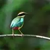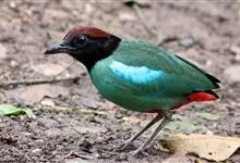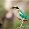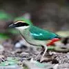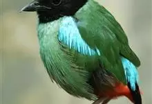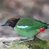 绿胸八色鸫:是雀形目八色鸫科的鸟类,共有12个亚种。体长为16-18厘米,体重65-69克。体型圆胖,尾短,腿长。头黑,上体绿色,两翼深色而具白色斑纹,头顶至后枕深褐,胸及腹部苹果绿,臀亮红。…全部>>