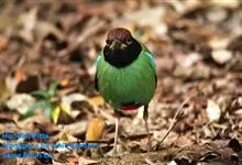 栗头八色鸫又叫锅巴雀,体长为24-26厘米,体重100-135克,是雀形目八色鸫科的鸟类。体型圆胖,尾短,腿长,常在森林底层或低植被中找食无脊椎动物。叫声简单哀婉。…全部>>